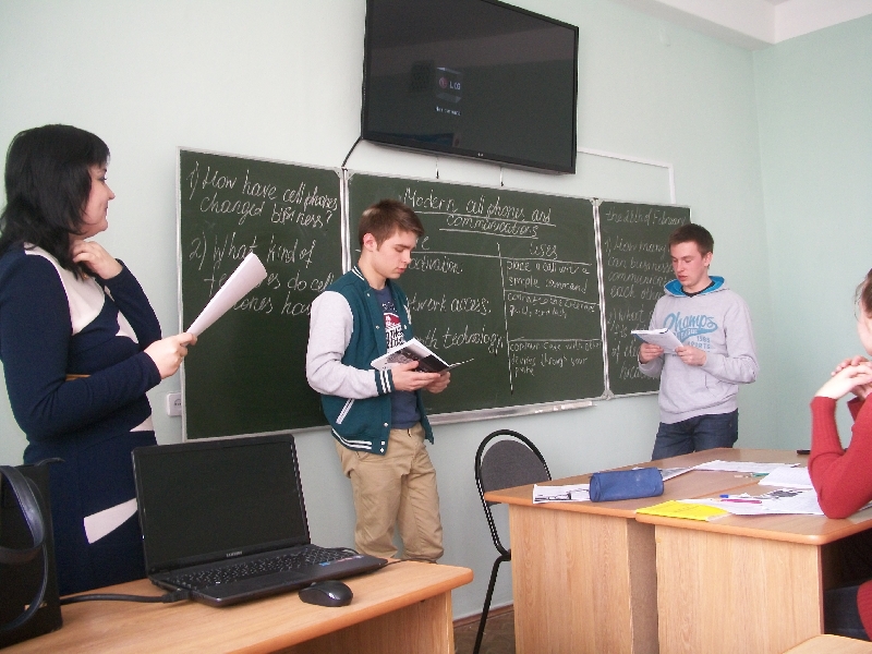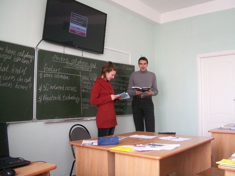 28.02.2014 на кафедре АЯ состоялось открытое занятие в группе 13ПМ1. Занятие проводила преподаватель Кулиева Е.Н. Тема занятия: “Modern cell phones and communications”.Преподаватель использовала большое количество дополнительного материала при подготовке к занятию. Студенты были вовлечены в различные виды деятельности: просмотр видео, аудирование, работа в группах, в парах, работа с дополнительным учебным материалом, построение диалогического и монологического высказывания.