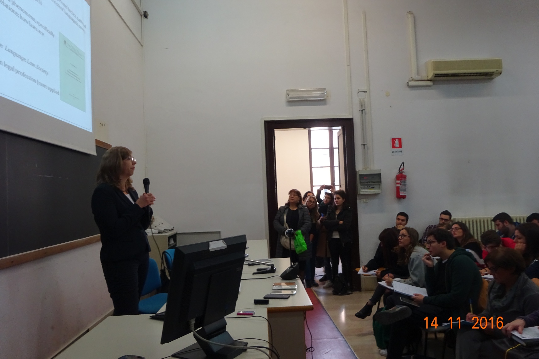 Зав. кафедрой «Английский язык», д.ф.н. Татьяна Викторовна Дубровская выступила с гостевыми лекциями в двух университетах на юге Италии. 14 и 15 ноября она представила на английском языке результаты своих исследований по юридической лингвистике перед студентами юридического факультета университета Фоджи. Лекции «Коммуникативная компетенция в юридических профессиональных практиках» и «Национально-культурная специфика русского и английского судебного дискурса» посетили около 300 студентов университета.