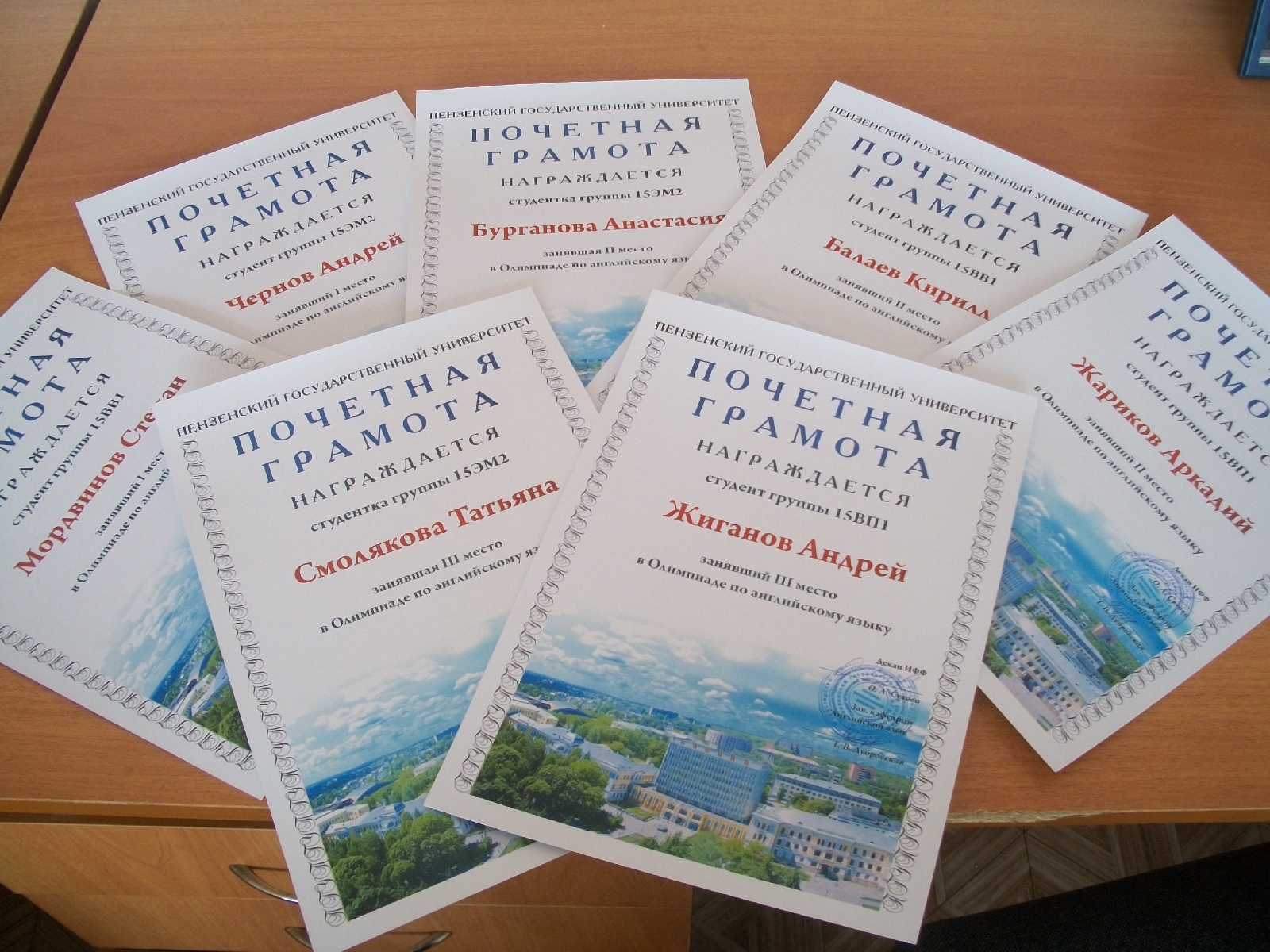 Торжественное вручение грамот победителям олимпиады по английскому языку