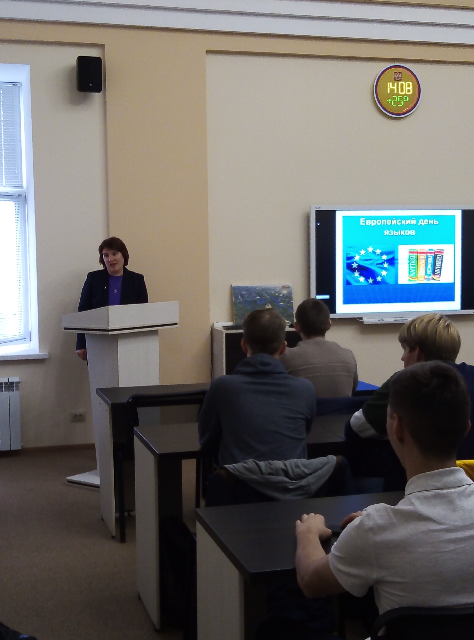 26 сентября 2019г в аудитории 1-308 состоялось ежегодное межвузовское мероприятие, посвященное «Европейскому дню языков», организованное преподавателями кафедры «Английский язык». Ответственными за организацию и проведение мероприятия были назначены: старший преподаватель Струнина Н.В., доцент, кандидат исторических наук Мусорина О.А., старший преподаватель Мещерякова Е.А. На мероприятии присутствовали студенты ПГУ (группы 19ВМ1, 19ЮЮ5) и студенты Колледжа Архитектуры и Строительства. По традиции, мероприятие началось с выступления старшего преподавателя кафедры «Английский язык Струниной Натальи Вячеславовны. Она рассказала об истории возникновения праздника «Европейский день языков». Студенты колледжа Архитектуры и Строительства рассказали на английском языке о своём учебном заведении, о традициях колледжа, направлениях, по которым обучаются студенты. Все присутствующие на мероприятии, приняли участие в викторине, которая носит традиционное название «Лингвистический баттл». Для участия в викторине студенты поделились на две команды: «Black Star» и «Super Star». Представители обоих учебных заведений с удовольствием включились в обсуждение вопросов викторины, развернулась оживлённая борьба за победу. По результатам подсчёта баллов, победила команда «Super Star». Мероприятие продолжилось выступлением Кожевниковой Екатерины Игоревны, преподавателя Пензенского филиала военной академии материально-технического обеспечения им. Генерала А.В. Хрулёва. Екатерина Игоревна недавно побывала в Ирландии. Она поделилась своими впечатлениями от поездки, рассказала об особенностях языковой культуры, достопримечательностях, жителях Ирландии. Повествование велось на английском языке. Все присутствующие на мероприятии отметили важность обсуждения вопросов, связанных с изучением иностранных языков. По отзывам студентов, они узнали много интересного о различных европейских языках и получили много полезной информации.