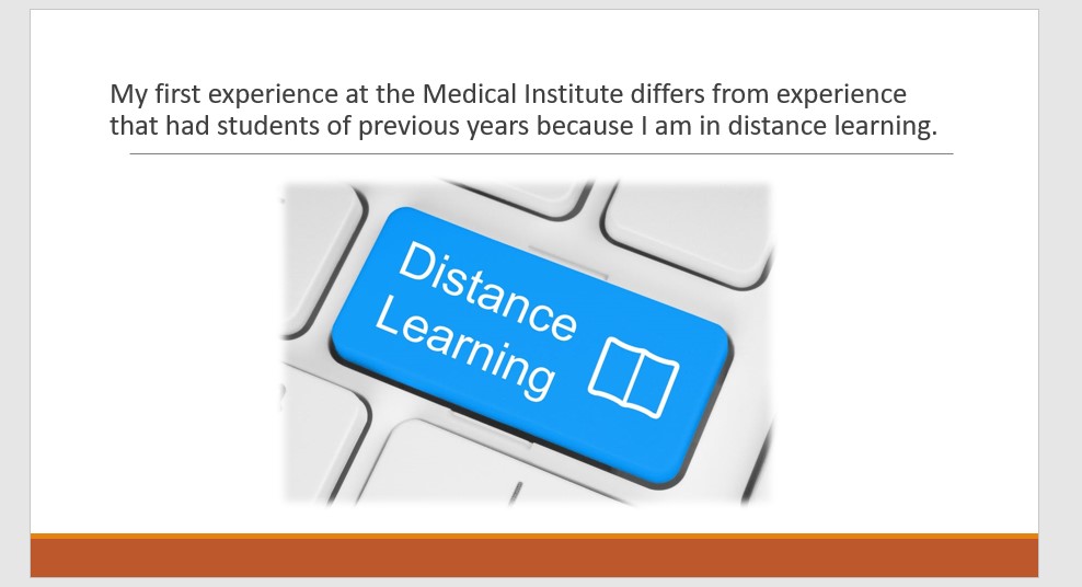 На кафедре «Английский язык» подведены итоги проектной работы со студентами Медицинского института на тему “My First Experience at the Medical Institute”. Инициатор проекта старший преподаватель кафедры Н.В. Антропова предложила студентам проявить себя в таких видах словесного творчества, как перевод отрывка художественного произведения, соответствующего тематике проекта, и групповое сочинение. В групповом сочинении студентам было предложено описать свой начальный опыт обучения в Медицинском институте.