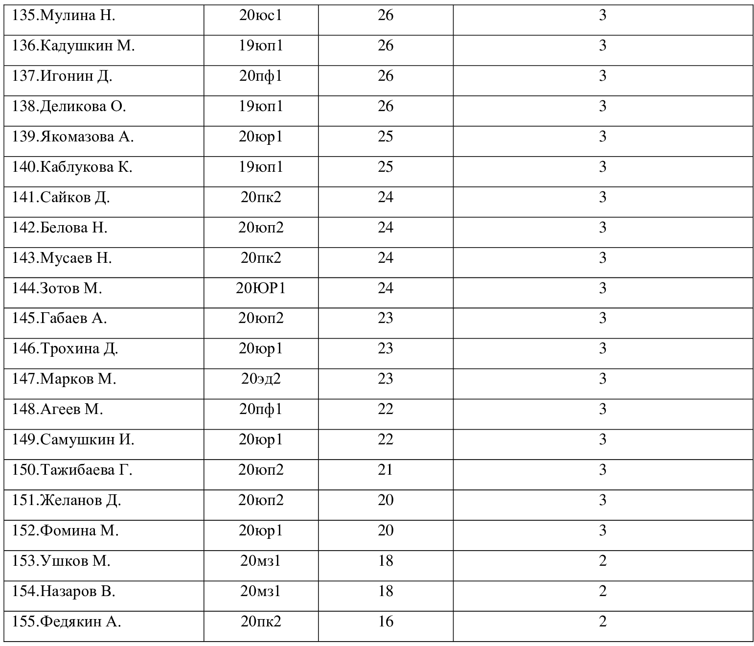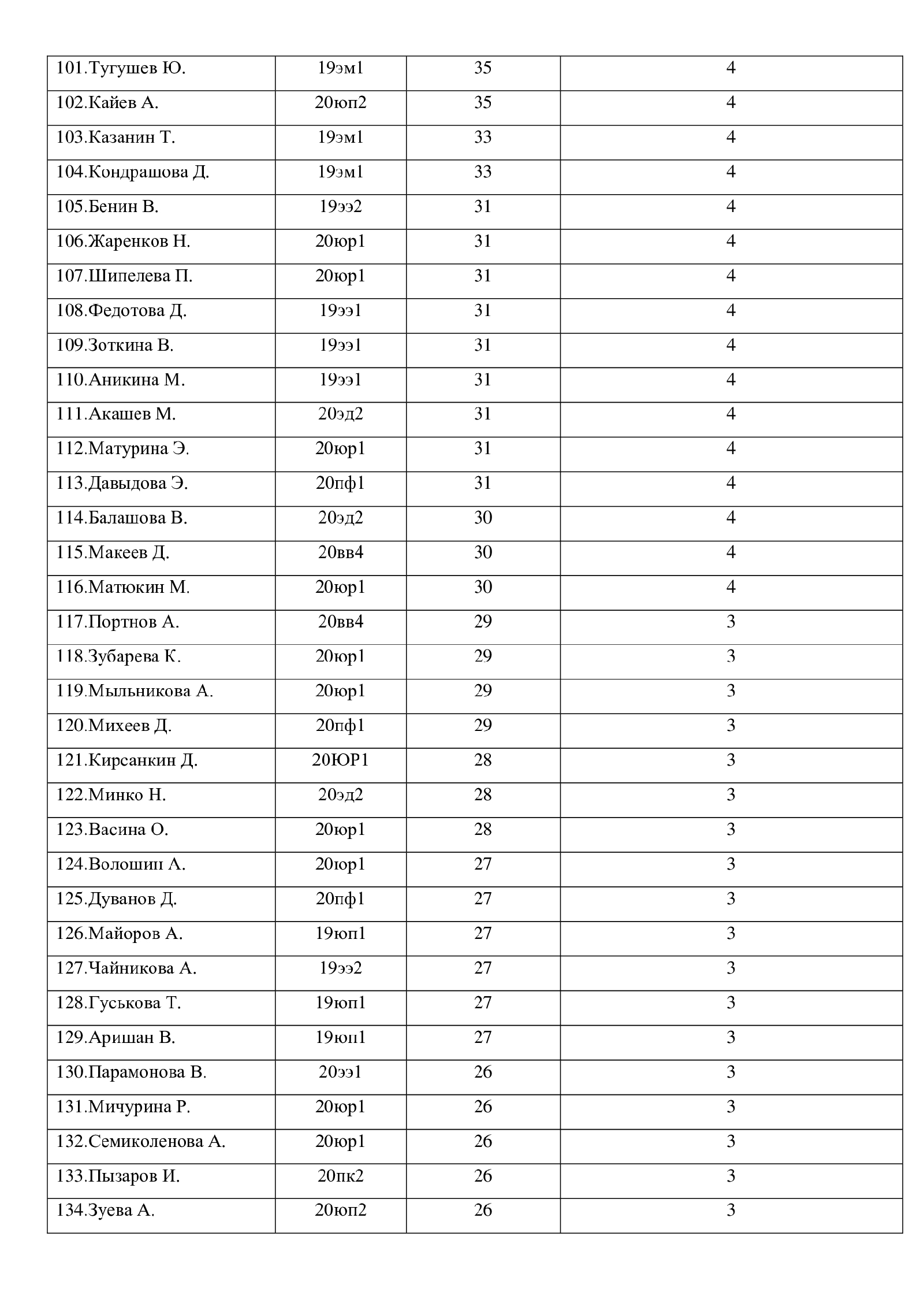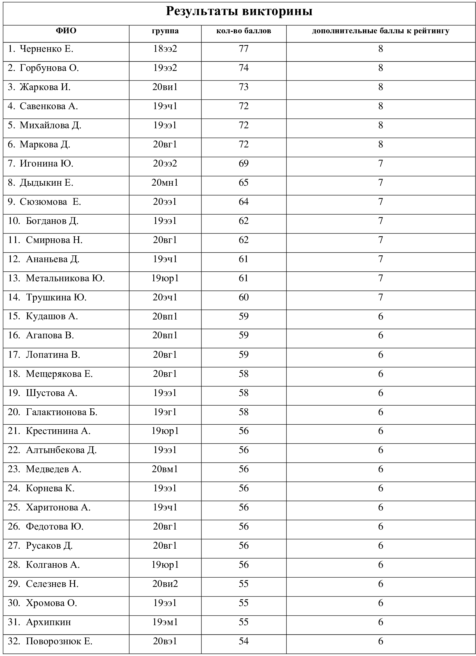 1 место – Черненко Е., группа 18ээ2 – 77 баллов
