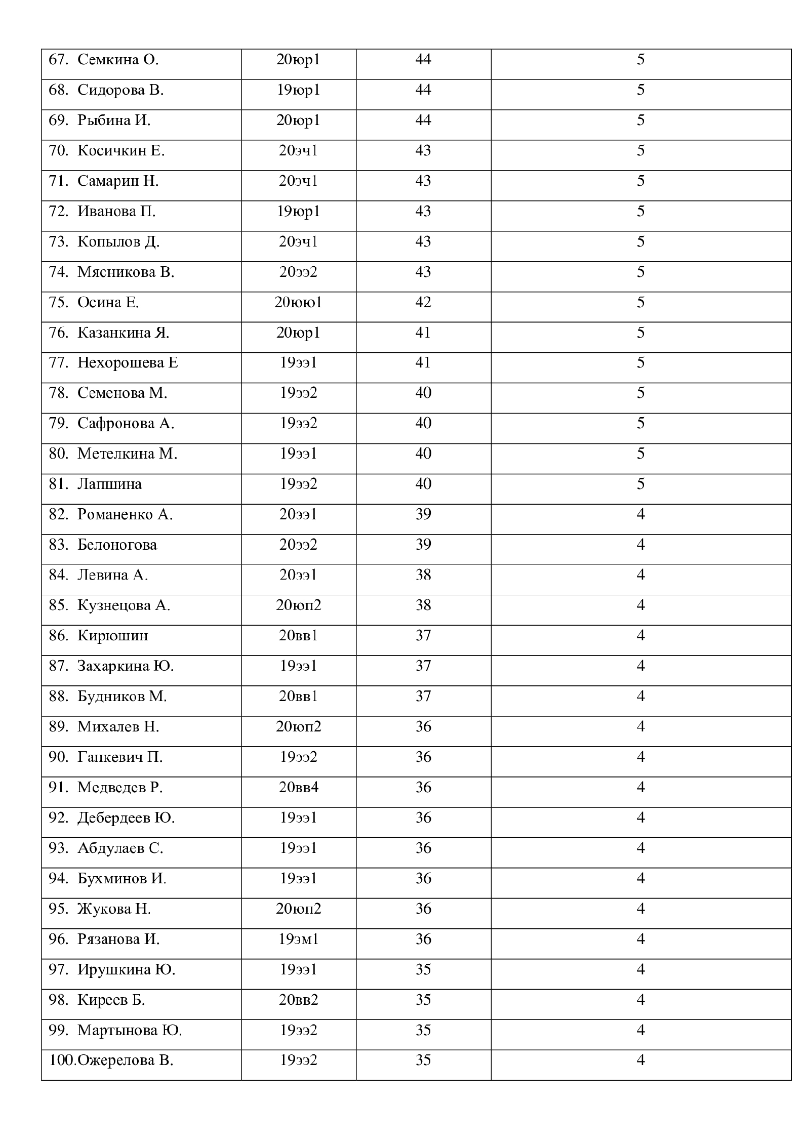 3 место – Жаркова И., группа 20ви1 – 73 балла