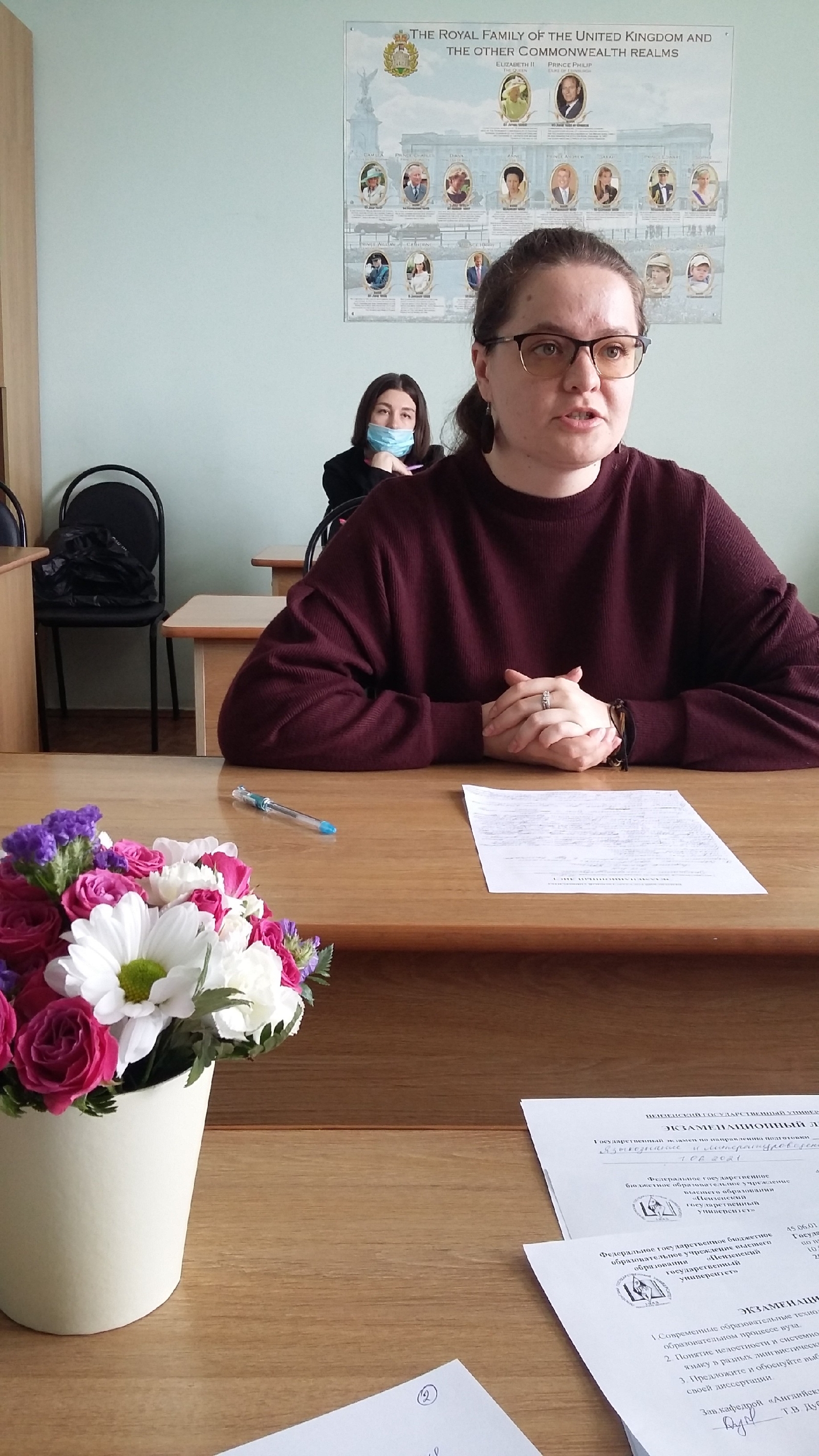 Началась государственная итоговая аттестация аспирантов, закончивших обучение по направлению 45.06.01 «Языкознание и литературоведение». 1 июня состоялся междисциплинарный экзамен. Аспиранты специальностей «Теория языка» и «Русский язык» продемонстрировали комиссии знания по педагогике и психологии высшей школы и специальным дисциплинам, а также сообщили о методах, которые они применяли в ходе своих научных исследований. Комиссия оценила ответы аспирантов как отличные и хорошие. В состав комиссии вошли научные руководители аспирантов д.филол.н., доц. Т.В. Дубровская и д.филол.н., доц. В.В. Шмелькова, а также представители Пензенского государственного университета архитектуры и строительства: к пед.н. О.А. Вдовина, к.филол.н., доц. Е.Г. Стешина и к.филол.н. Т.А. Козина. 19 июня состоится защита научных докладов.