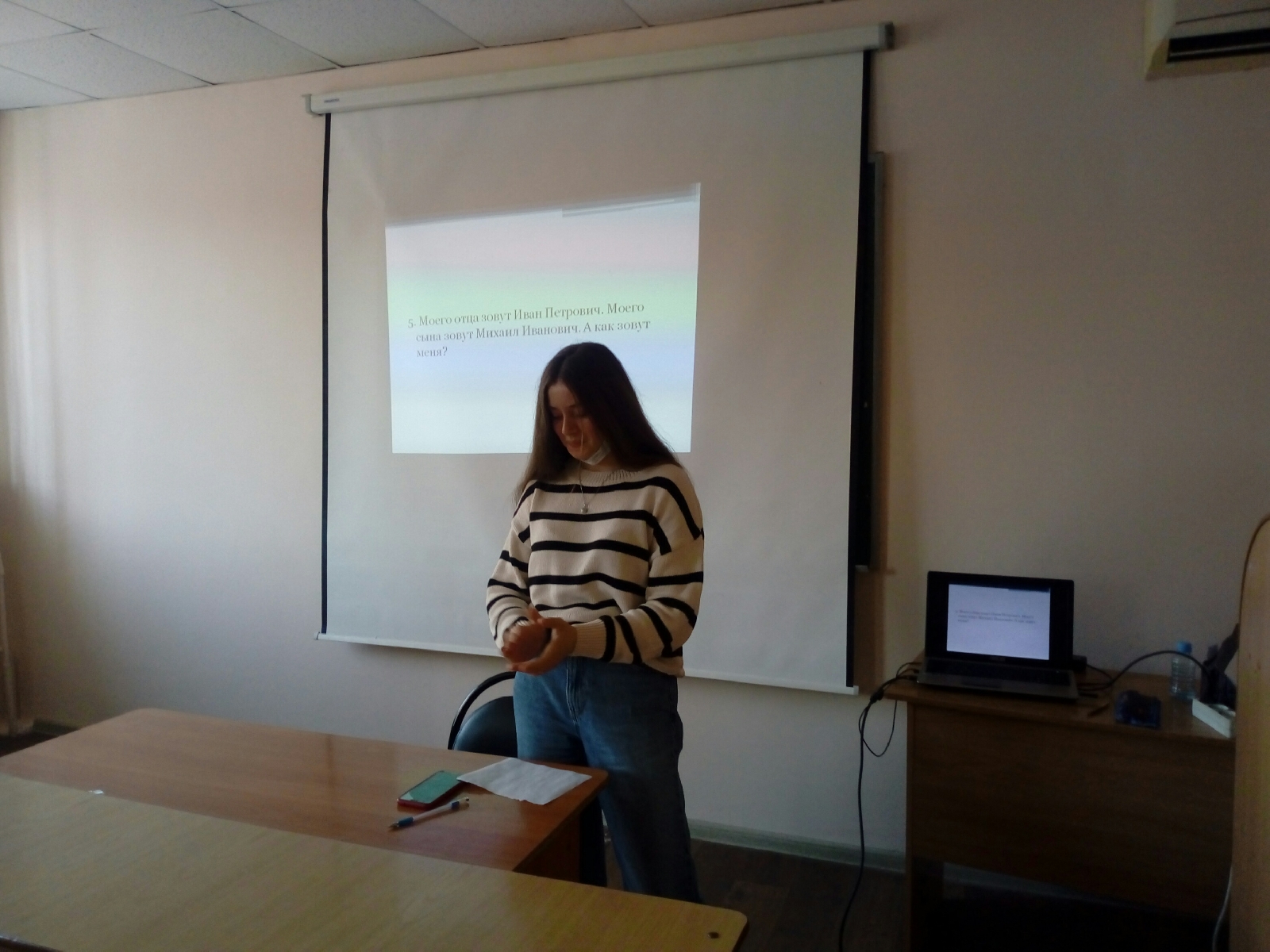 13 апреля 2022 г. преподаватели кафедры Мусорина О.А. и Монахова С.Л. провели воспитательное мероприятие под названием «Лингвистический баттл», в котором приняли участие студенты Многопрофильного колледжа (гр. 21КС2 и 21КИС1). Студенты разделились на команды, чтобы ответить на многочисленные вопросы из области лингвистики. Задания включали факты из истории развития и взаимовлияния языков, происхождения слов, в том числе известных топонимов. Ребятам потребовались не только знание родного и нескольких иностранных языков, но также логика и смекалка. В итоге 1 место разделили команды «Трио» (гр. 21КИС1) и «Первый ряд» (гр. 21КИС1), 2 место досталось команде «Wings» (гр. 21КИС1), а 3 место заняла команда «Звездочки» (гр. 21КС2). Каждая команда будет награждена грамотой.