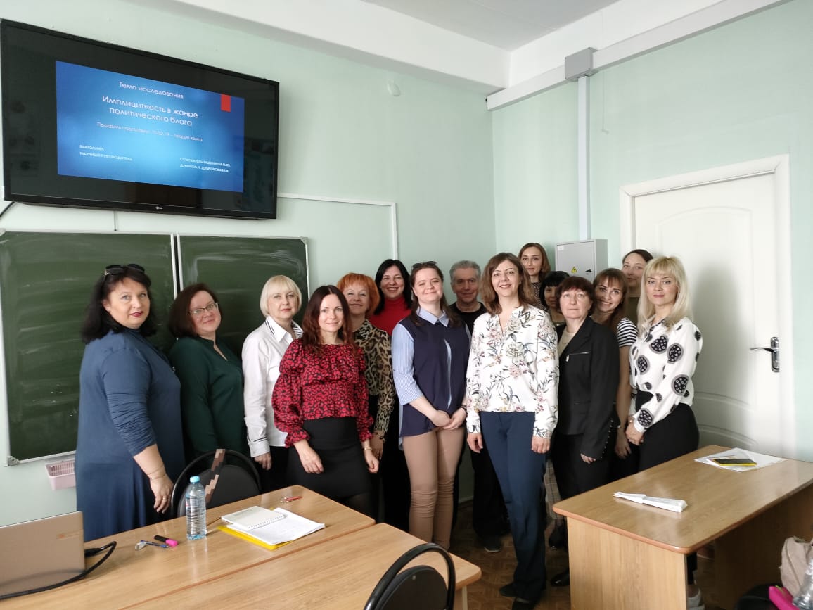 27 апреля 2022 г. на кафедре «Английский язык» состоялось заседание кафедры для предварительного обсуждения (предзащиты) диссертации на соискание учёной степени кандидата филологических наук Видинеевой Н.Ю. «Имплицитность в жанре политического блога» (научный руководитель д.ф.н., доцент Дубровская Т.В.).