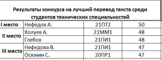 Подведены итоги конкурса на лучший перевод текста среди студентов технических специальностей