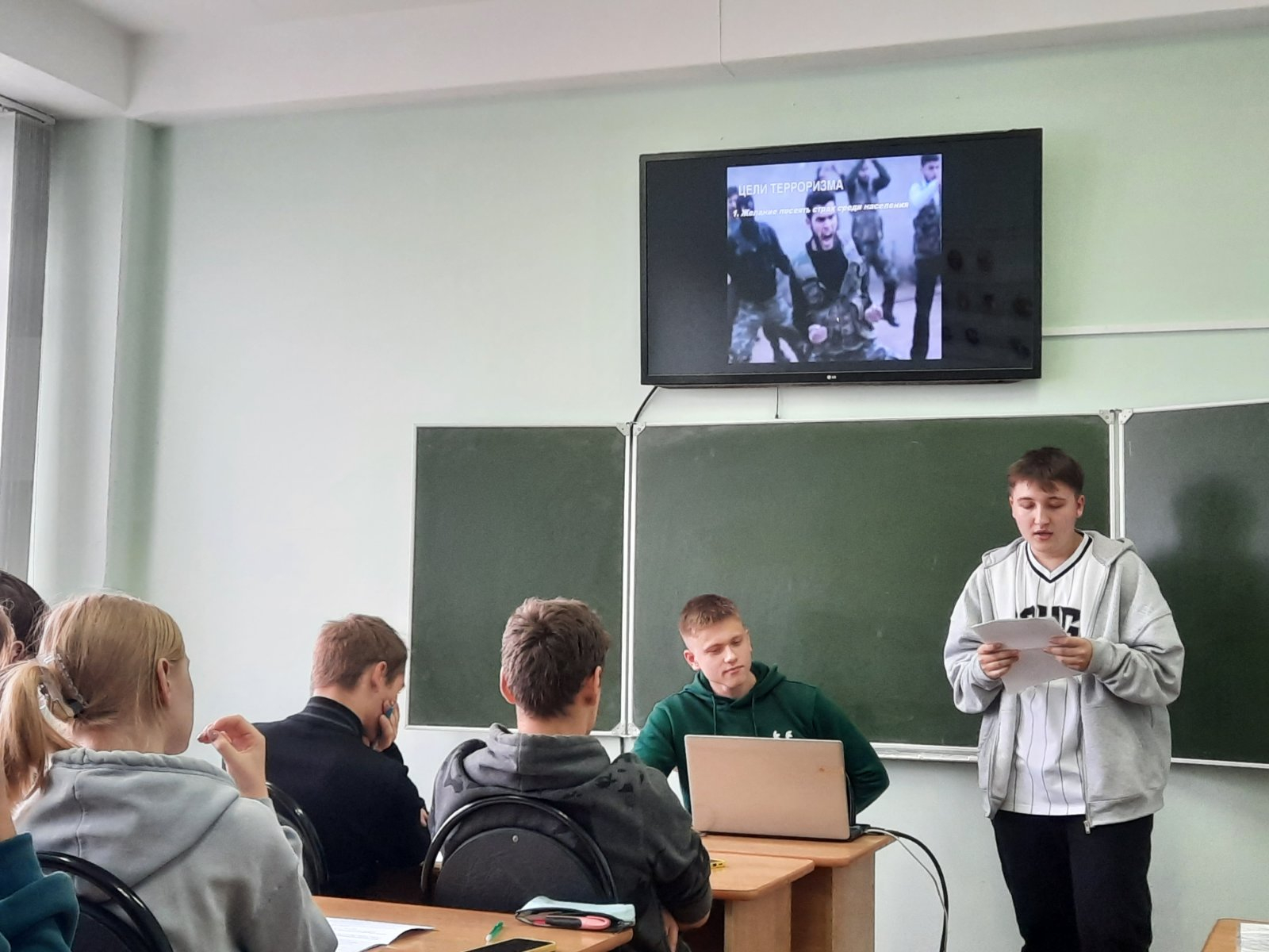 26 октября 2023 на кафедре "Английский язык" состоялось мероприятие, посвященное противодействию терроризму и экстремизму. Мероприятие было организовано старшим преподавателям кафедры "Английский язык" Мещеряковой Е.А. и доцентами кафедры к.ф.н Крехтуновой Е.В., к.п.н Соловьевой Е.В. На мероприятие собрались студенты технических специальностей (группы 23ПД1, 23МН1). Студенты выступили с докладами по теме мероприятия: