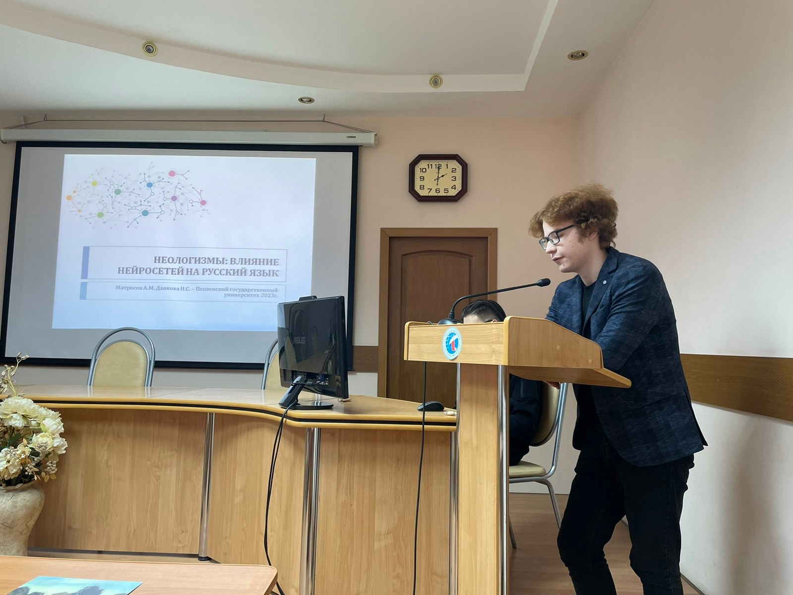 30-31 октября в Пензенском государственном технологическом университете прошла X Международная научно-практическая конференция «Язык как основа современного межкультурного взаимодействия». С докладами выступили учёные и студенты, среди которых были учащиеся Пензенского государственного университета. Студент группы 22ВВВ1 Александр Матросов выступил с докладом «Неологизмы: влияние нейросетей на русский язык », подготовленным под руководством доцента Н.С. Данковой. Студентка группы 20ЭБХ1 представила доклад на тему «Ненормативная лексика: есть ли шанс искоренить ее?», подготовленный под руководством доцента О.П. Михановой. Представленные доклады вызвали интерес у аудитории, докладчики с удовольствием ответили на возникшие вопросы. Студенты имели возможность принять участие в дискуссии, а также получили полезный опыт участия в научном исследовании.