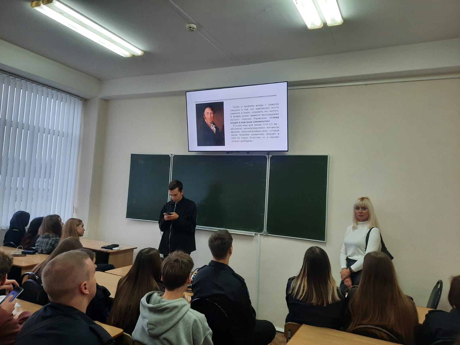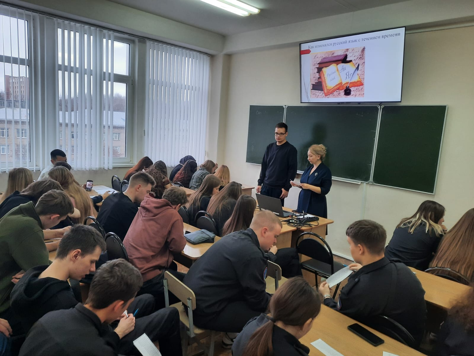 В мероприятии приняли участие студенты групп 22ПП1, 25ЛЛО1, 25ЛС7, 22КД6, 23КД4. Участники обсудили наиболее распространенные проблемы, с которыми сталкивается современный русский язык: частое использование жаргонизмов, засилье англицизмов во всех сферах деятельности человека, необоснованное использование заимствованных слов, необходимость борьбы с использованием нецензурной лексики.