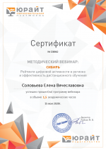 Доцент кафедры «Английский язык» Соловьева Е.В. приняла участие в вебинарах на учебной платформе ЭБС ЮРАЙТ, темы вебинаров: «Рейтинг цифровой...