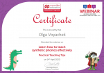 28.04.2020 16:50 Вебинар на английском языке «Learn how to teach synthetic phonics effectively»
